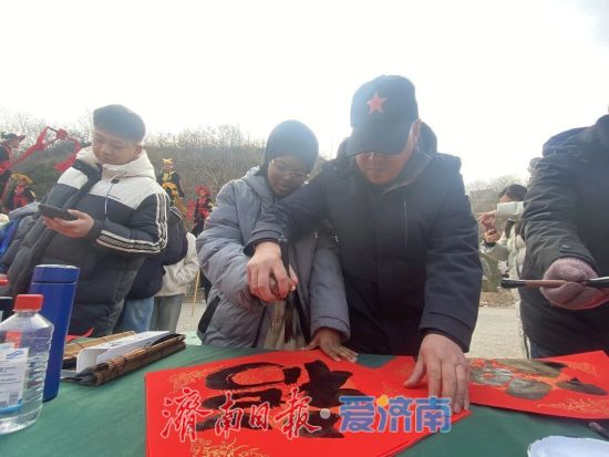 除了觀看表演,友人們還親自上手,體驗了中國年的傳統(tǒng)習(xí)俗。在指導(dǎo)下,他們興致勃勃地提筆揮毫,學(xué)寫“福”字,感受漢字書法蘊含的美好寓意。大集上琳瑯滿目的特色年食更是吸引了大家的味蕾,F(xiàn)炒的茶湯香氣撲鼻,軟糯香甜的年糕寓意步步高升,還有特色山東煎餅、各式蜜餞等,讓友人們在品嘗中直觀體會到中國飲食文化的豐富與地域特色。