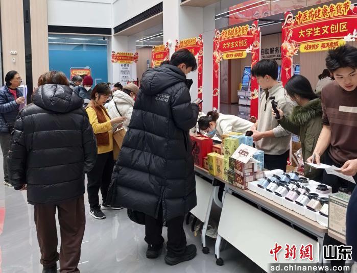 活動(dòng)現(xiàn)場(chǎng)分區(qū)明確,設(shè)有“養(yǎng)生方劑展示區(qū)”“自制劑展示區(qū)”“藥食同源區(qū)”“中醫(yī)生活坊”“大學(xué)生文創(chuàng)區(qū)”等功能區(qū)。展臺(tái)上,包裝精致的養(yǎng)生禮盒、藥食同源產(chǎn)品、特色自制劑等健康好物整齊陳列,市民或上手體驗(yàn),或向工作人員咨詢養(yǎng)生功效,沉浸式尋覓適合自身的“健康年貨”。