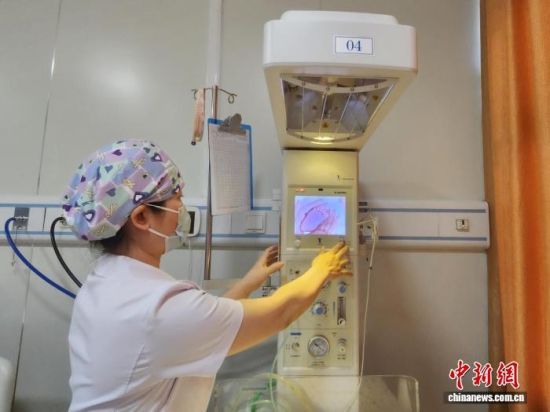 李術(shù)娟在病房內(nèi)使用新生兒輻射保暖臺。趙曉 攝