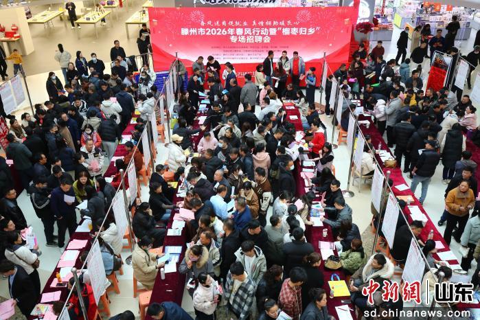 山東省滕州市于正月初六舉辦2026年春風行動“榴棗歸鄉(xiāng)”專場招聘會。120余家重點企業(yè)齊聚現(xiàn)場,集中推出高端裝備制造、化工新材料等熱門領域崗位3800余個,為返鄉(xiāng)人員、就業(yè)困難群體等搭建起便捷高效的就業(yè)對接橋梁。李志軍 攝
