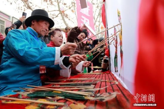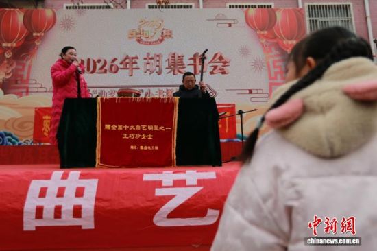 2月28日,有著“中國(guó)曲藝界活化石”之稱(chēng)的胡集書(shū)會(huì)在山東省濱州市惠民縣如期鳴鑼開(kāi)唱。中國(guó)曲協(xié)曲藝名家新秀“送歡笑到基層”的精彩演出和來(lái)自全國(guó)22個(gè)省市自治區(qū)的300余名曲藝藝人負(fù)鼓攜琴,說(shuō)書(shū)獻(xiàn)藝,為民眾獻(xiàn)上一場(chǎng)文化盛宴。圖為書(shū)會(huì)現(xiàn)場(chǎng)的曲藝表演吸引民眾觀看。中新社記者 梁犇 攝