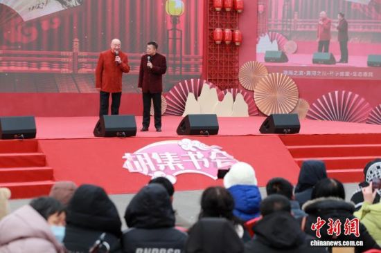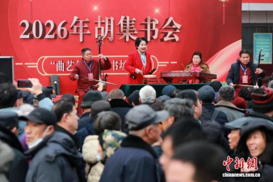 圖為書(shū)會(huì)現(xiàn)場(chǎng)的曲藝表演吸引民眾觀看。中新社記者 梁犇 攝