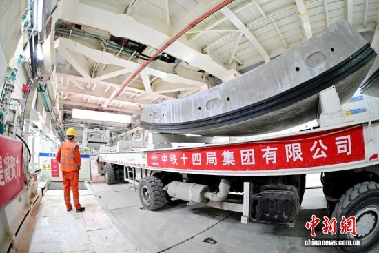 3月8日,青島膠州灣第二隧道項目施工正酣。該項目是世界建設規(guī)模最大、長度最長、綜合實施難度最高的海底道路隧道,采用明挖、盾構和鉆爆法組合工法施工。該項目主線南線盾構段由中鐵十四局集團負責施工,采用“海天號”超大直徑盾構機掘進,能完成隧道開挖、襯砌、出渣等一體化作業(yè),如同在海底深處“搭積木”般精密施工。圖為管片運輸車在運輸隧道管片。丁翔 攝
