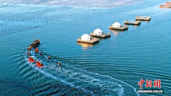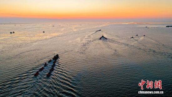 3月10日,山東省榮成市愛倫灣海洋牧場,養(yǎng)殖工人駕駛船只身披美麗的朝陽,奔赴海帶養(yǎng)殖區(qū)收獲鮮海帶。對養(yǎng)殖區(qū)鮮海帶間苗收割投放春季市場,既為海帶后期生長預(yù)留生長空間,提高海帶品質(zhì)和產(chǎn)量,又可拓寬春季蔬菜市場,提高養(yǎng)殖收益。山東榮成是我國海帶主產(chǎn)區(qū),養(yǎng)殖海帶18萬畝,海帶養(yǎng)殖面積產(chǎn)量占全國的40%、山東省80%以上。圖/CNSphoto 楊志禮 攝
