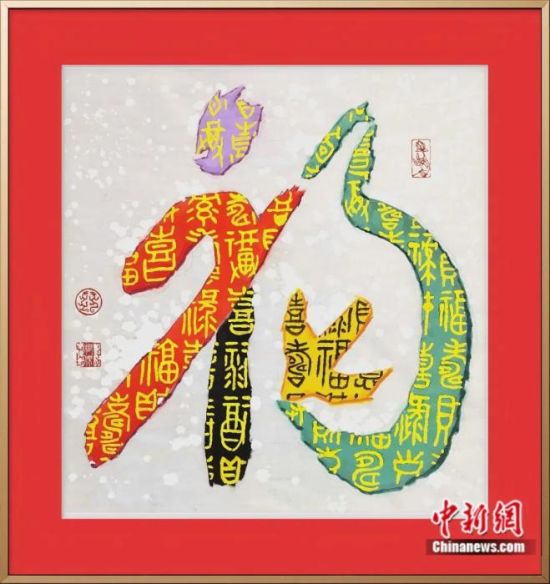 中國徐福會(huì)中外藝術(shù)家專委會(huì)特邀理事姚強(qiáng)所集甲骨文中的“福”。中國徐福會(huì)供圖