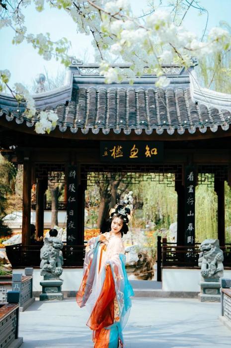 身著漢服入園,繁花為景,亭臺為襯,無論是花叢小徑還是古樸亭閣,隨手一拍皆是古風(fēng)大片。