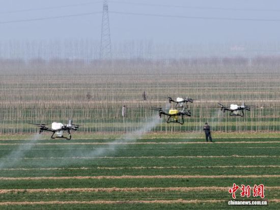 中新網(wǎng)濟(jì)南3月13日電(記者 孫婷婷)春和景明,“90后”新農(nóng)人張賓操控著無人植保機(jī),掠過已經(jīng)返青的麥田,細(xì)密的霧狀藥劑均勻?yàn)⒙湓谧聣训柠溍缟稀?/p>