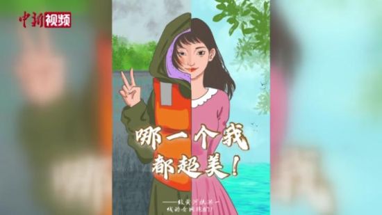 濟南女孩手繪防汛海報 致敬黃河守堤人