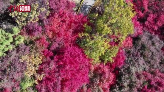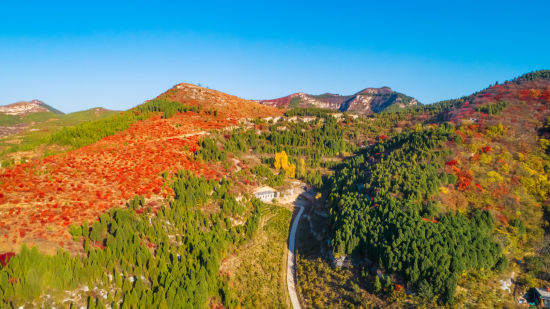 似“鴛鴦火鍋” 一起看濟南蝎子山“半山翠綠半山紅”