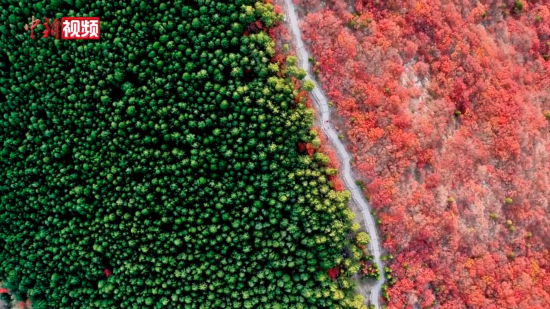 似“鴛鴦火鍋” 一起看濟(jì)南蝎子山“半山翠綠半山紅”