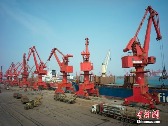10月27日,中國(guó)首座40萬(wàn)噸干散貨數(shù)智碼頭在山東青島投產(chǎn)。該碼頭是山東港口青島港第二座40萬(wàn)噸礦石碼頭,實(shí)現(xiàn)了全流程生產(chǎn)經(jīng)營(yíng)過(guò)程的實(shí)時(shí)監(jiān)測(cè)、智慧決策和數(shù)字化感知,填補(bǔ)了中國(guó)國(guó)內(nèi)超大型干散貨碼頭數(shù)智化運(yùn)營(yíng)的空白。圖為船舶在碼頭進(jìn)行卸船作業(yè)。10月27日,中國(guó)首座40萬(wàn)噸干散貨數(shù)智碼頭在山東青島投產(chǎn)。