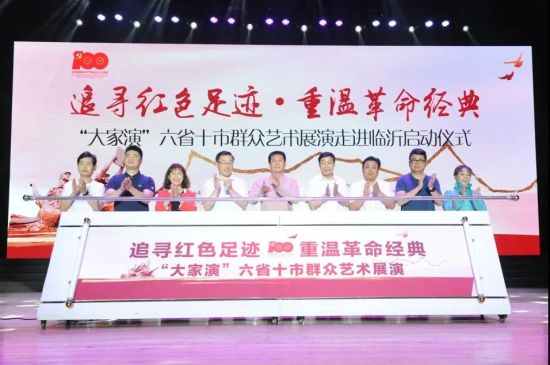 6月5日至6日,由山東省文化和旅游廳、臨沂市人民政府主辦,山東省文化館、臨沂市文化和旅游局、費(fèi)縣人民政府承辦的“追尋紅色足跡·重溫革命經(jīng)典”——“大家演”六省十市群眾藝術(shù)展演走進(jìn)臨沂系列活動(dòng)在臨沂舉行。此次活動(dòng)旨在通過展演紅色經(jīng)典節(jié)目,傳承革命基因,讓更多群眾感受紅色文藝的魅力,提升基層群眾文化獲得感、幸福感。山東省文化和旅游廳、臨沂市、費(fèi)縣有關(guān)領(lǐng)導(dǎo)同志和當(dāng)?shù)匚乃嚬ぷ髡、干部群眾等觀看了演出。