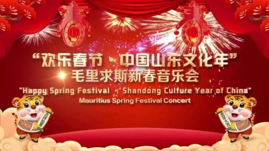舉辦歡樂春節(jié)·中國山東文化年”—毛里求斯新春音樂會。音樂會由山東歌舞劇院民族樂團承辦,于春節(jié)期間亮相毛里求斯國家電視臺和衛(wèi)星頻道。音樂會演奏曲目中既有《恭賀新禧》《花好月圓》《茉莉花》等傳統(tǒng)保留曲目,也有毛里求斯民眾耳熟能詳?shù)摹对铝链砦业男摹贰而櫻恪返刃戮幥。其中,為本場音樂會量身打造的毛里求斯?jīng)典曲目《La Rivière Tanier》(塔尼爾河)作為壓軸節(jié)目亮相,讓觀眾們感受到了兩國文化交融的獨特魅力,奏響了兩國共慶新春的頌歌。