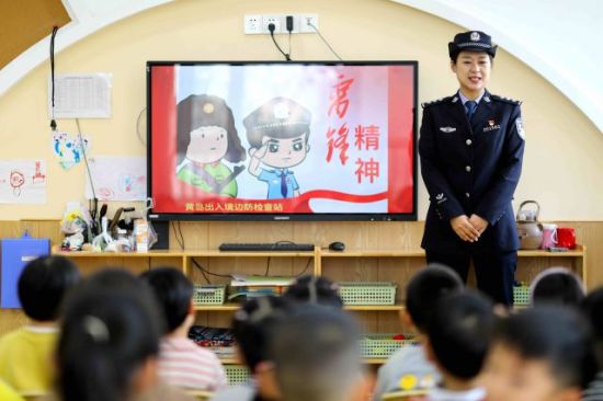 日前,在山東青島西海岸新區(qū),黃島出入境邊防檢查站的民警走進嘉沐翡翠灣幼兒園,開展“雷鋒精神代代傳”主題活動,通過學習雷鋒事跡、學唱雷鋒歌曲、學繪雷鋒畫像等方式,讓孩子們知雷鋒、愛雷鋒、學雷鋒,傳承雷鋒精神,做好雷鋒接班人。