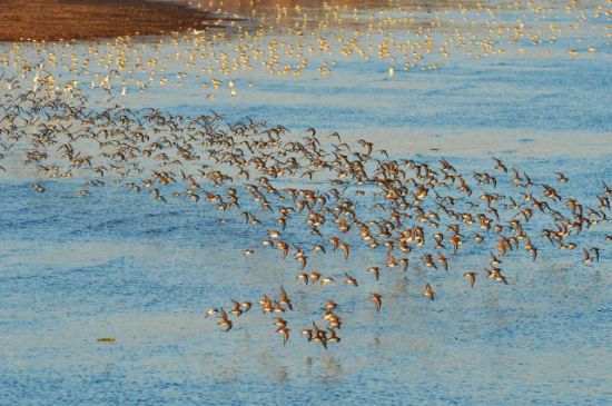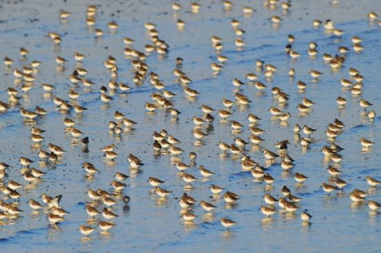 成群鸻鷸類候鳥在巡游覓食。王海濱 攝