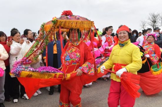 3月1日是中國傳統(tǒng)節(jié)日“二月二”,在山東省青島市城陽區(qū)紅島街道高家社區(qū)市集上,人們扭秧歌、跑旱船,用傳統(tǒng)民俗文化的方式歡度佳節(jié)。