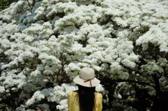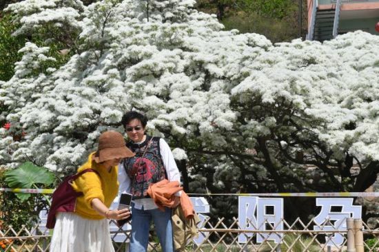 據(jù)介紹,該流蘇樹直徑近1米,樹高約18米,生長(zhǎng)在深坑中,樹齡近300年。流蘇樹每年4月開花,故稱“四月雪”。因流蘇樹的花朵形態(tài)與古代女子頭飾上的流蘇相似而得名,常被視為吉祥之物,象征著純潔的愛情和美好的祝愿。