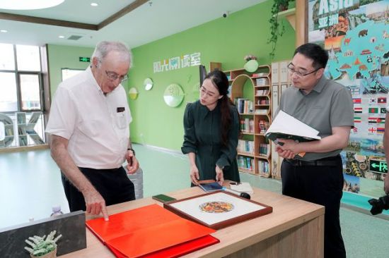 在學校傳統(tǒng)文化與人文交流活動室,學生們圍繞“我眼中的法國”展開提問,白樂桑結合多年漢學研究經(jīng)驗,從多個方面向?qū)W生們介紹法國,并教孩子們學習簡單法語和法語兒歌。他鼓勵學生們積極參與中法交流活動,努力成為中法文化交流的小使者。在陽光閱覽室,白樂桑向?qū)W生們推薦了法國優(yōu)秀文學作品《拉封丹寓言》,并勉勵同學們通過閱讀和學習深入了解不同國家文化,培養(yǎng)跨文化理解能力。