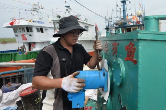 8月28日,在山東省青島市城陽區(qū)河套街道漁港碼頭,漁民在修理捕魚設(shè)備,為秋季漁業(yè)生產(chǎn)做準(zhǔn)備。王海濱 攝