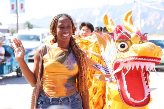 外國友人在開海儀式的舞龍環(huán)節(jié)合影留念。謝順偉 攝